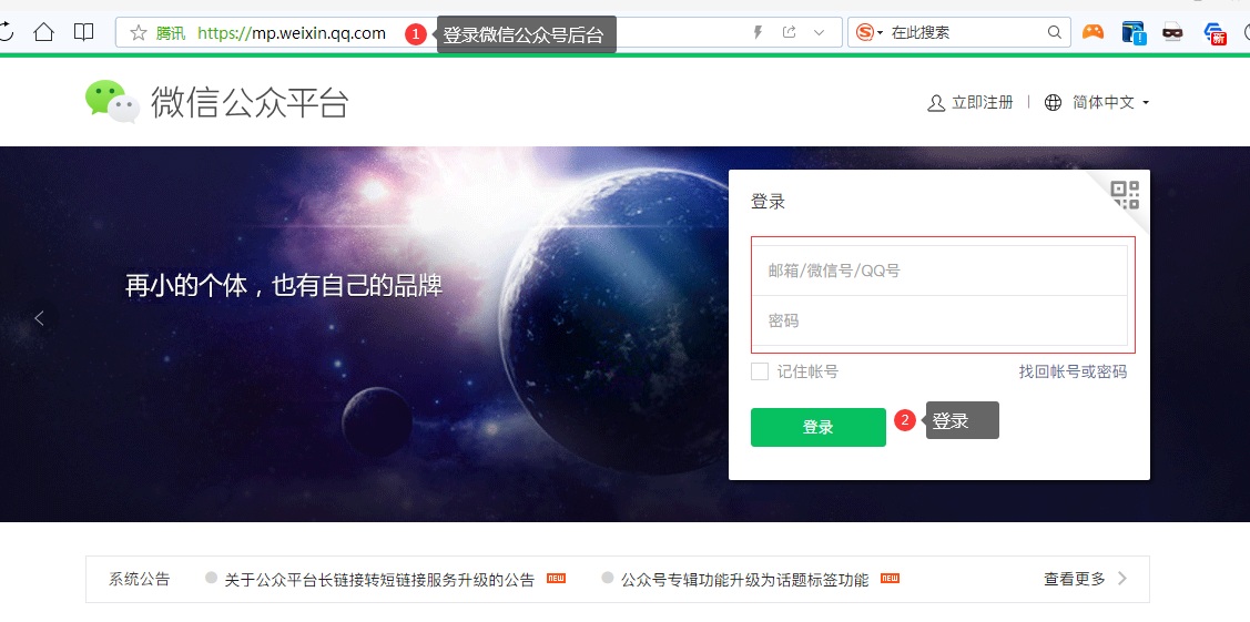 3、登录电脑端微信公众号平台